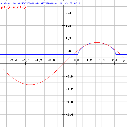 sinx=pi/2*(1-0.5947152654*(1-(x-pi/2)^2/m)^0.5)^0.5+2