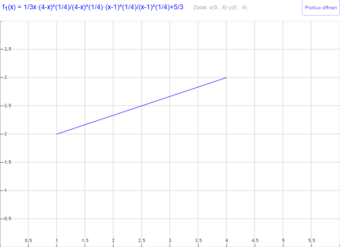 v Vektor =1/3x*(4-x)^(1/4)/(4-x)^(1/4)*(x-1)^(1/4)/(x-1)^(1/4)+5/3